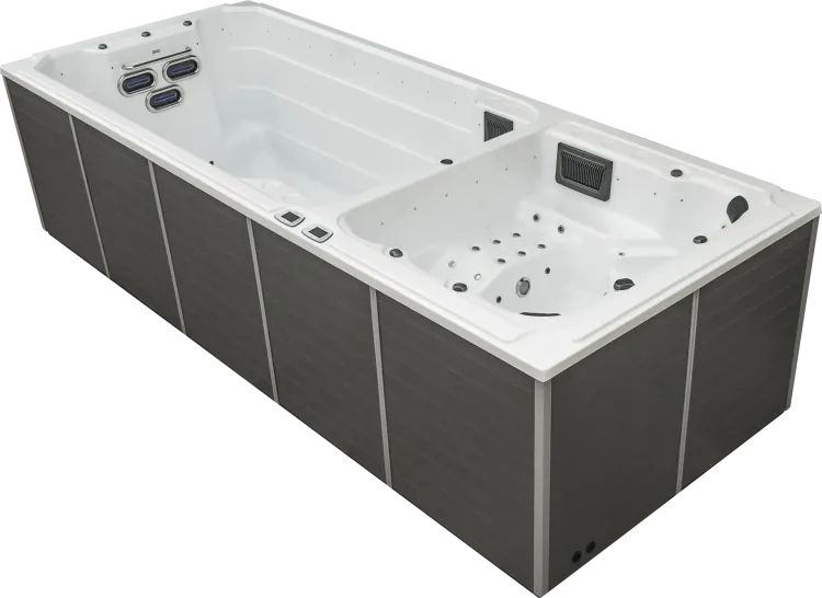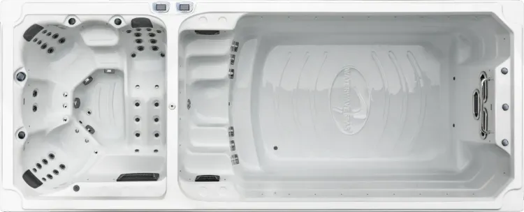 Erleben Sie mit dem Waterwaves Swimspa Fuego vielseitige Möglichkeiten für Bewegung und Entspannung. Die leistungsstarke Strömung bietet ideale Bedingungen für Aqua-Training und Schwimmen, während integrierte Massagedüsen für regenerierende Wellness sorgen. Modernes Design, intuitive Bedienung und energiesparende Technik machen den Fuego zum Highlight im eigenen Garten – für mehr Lebensqualität jeden Tag im 2-Zonen SwimSpa (Schwimmbereich z.B. 26 Grad/Whirlpoolbereich 36 Grad).